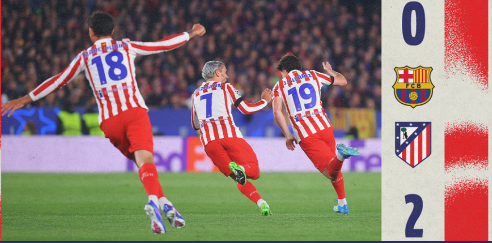 马德里竞技客场告捷,欧冠首回合力压巴塞罗那